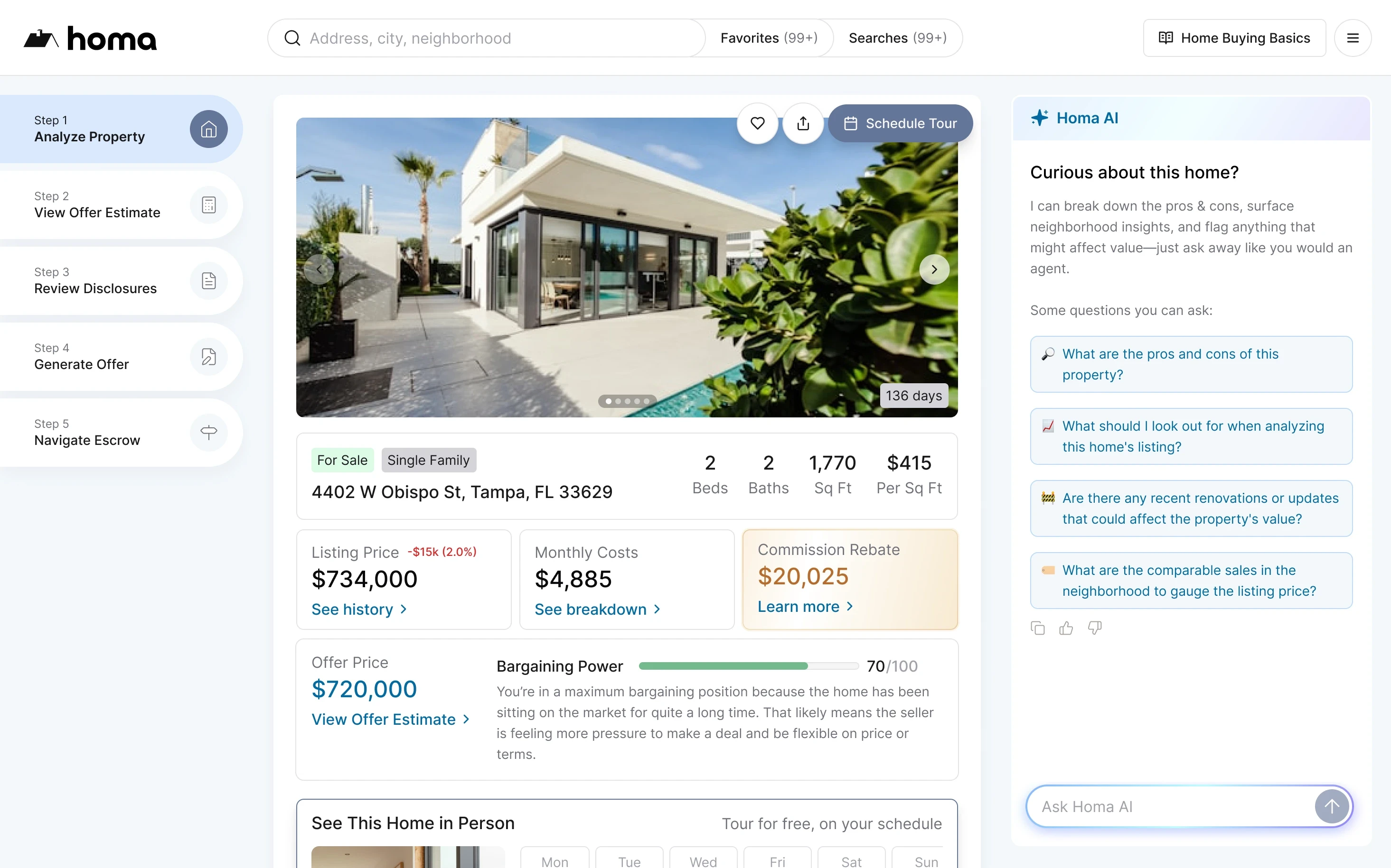 Leverage Homa’s advanced algorithm to calculate a competitive offer price — and get expert input before you submit.